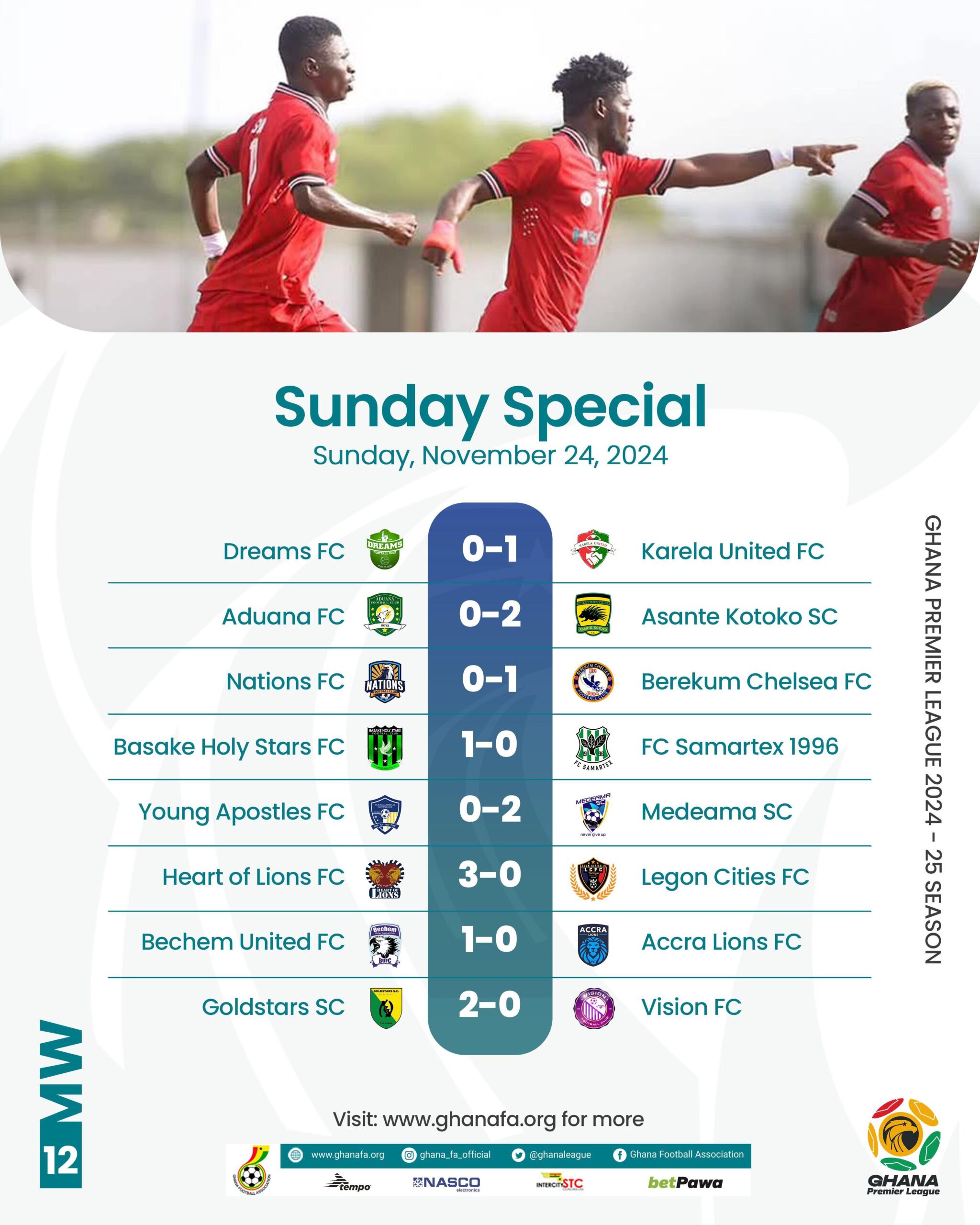 Meanwhile, the league’s defending champions FC Samartex were beaten by newcomers Basake Holy Stars by a goal to nothing.