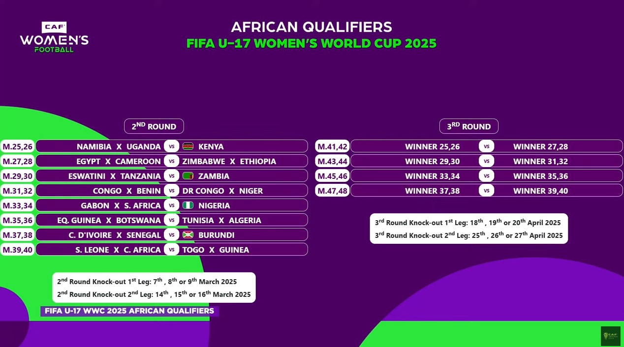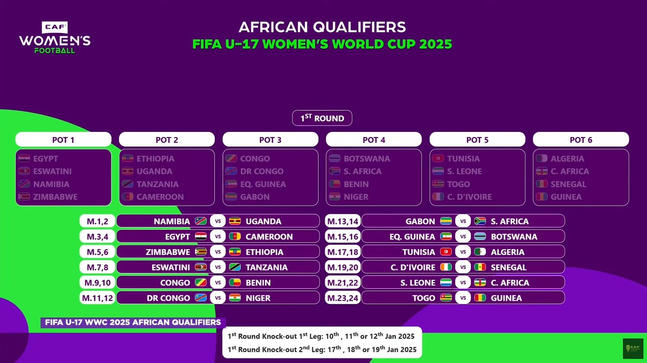 The Confederation of African Football (CAF) has completed the draw for the African qualifiers of the 2025 Fifa U-17 Women’s World Cup.