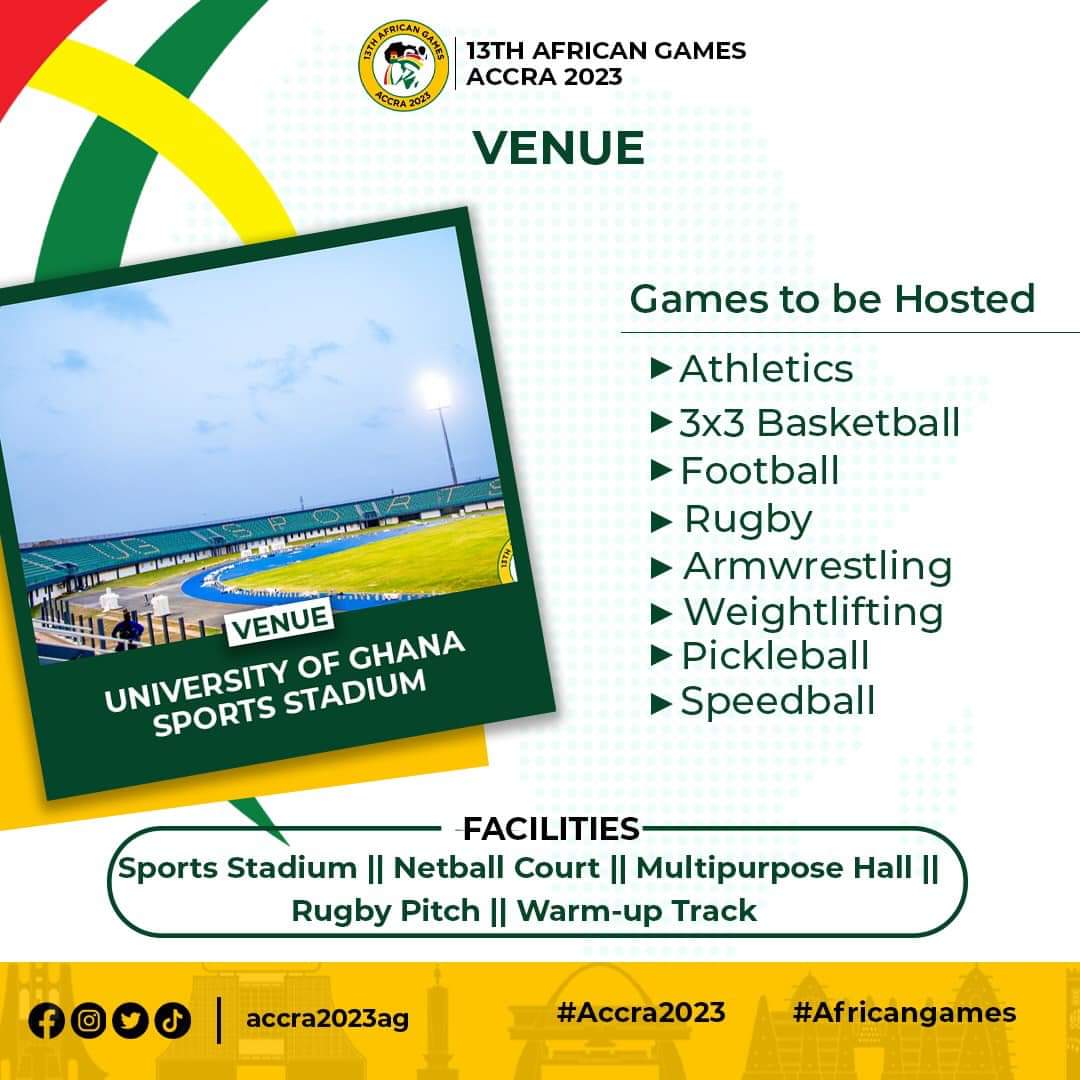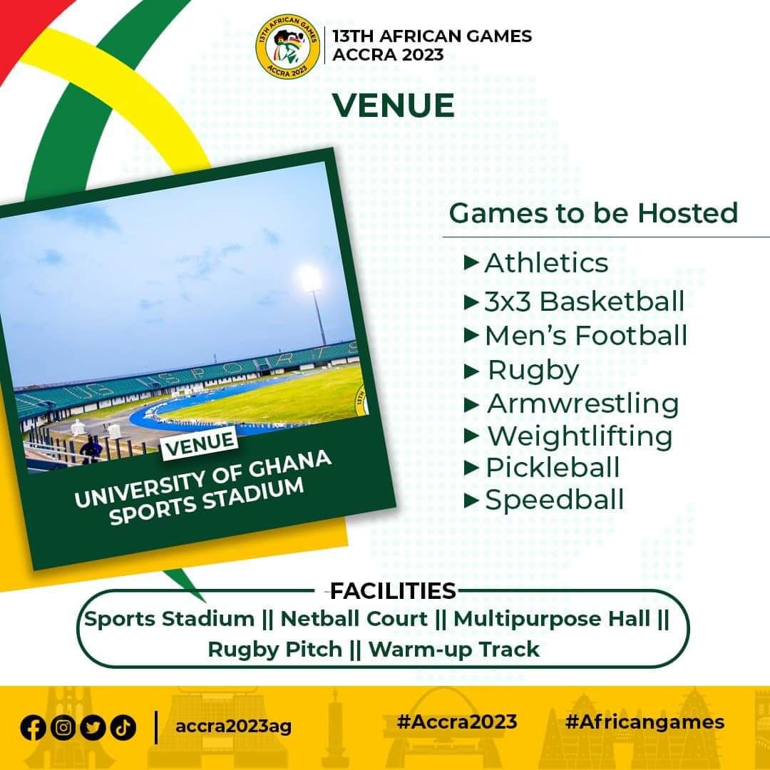 Ghana’s premiere university’s stadium will host football, athletics, 3×3 basketball, rugby, arm wrestling, squash, and rugby.
