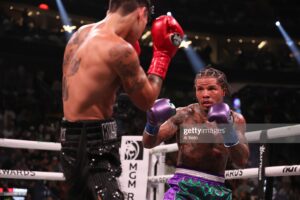 In round six, Garcia landed a right hand that appeared to wobble Davis along the ropes, then another right hand upstairs the middle. Chants of “Ry-an! Ry-an!” echoed through the arena. Davis slightly hit Garcia with an uppercut on the inside that Garcia tok well.