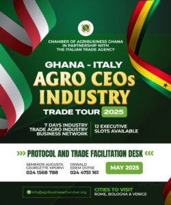 The Chamber of Agribusiness Ghana, in collaboration with the Italian Trade Agency, is set to embark on an exclusive Ghana-Italy Agro CEOs Industry Trade Tour 2025.