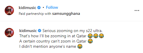 It’s in the wake of this that KiDi has been spotted throwing a subtle swipe at Nigeria on social media whilst doing PR for one of the brands he is associated with. Although he did not cite anyone, in particular, it’s obvious whom the swipe is aimed at clearly.