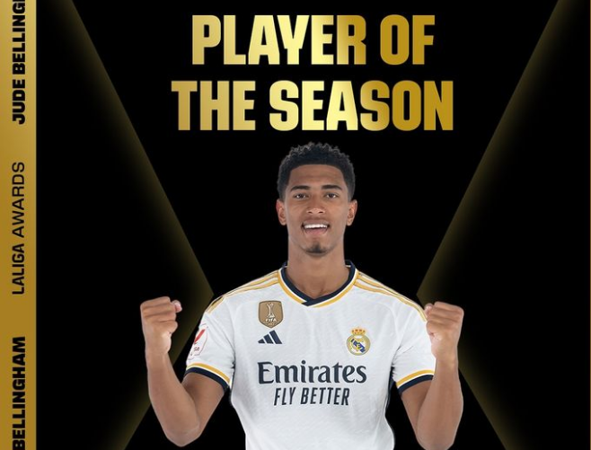 Jude Bellingham, a midfielder for Real Madrid and England, was named as La Liga’s Player of the Season in his first season in Spain.