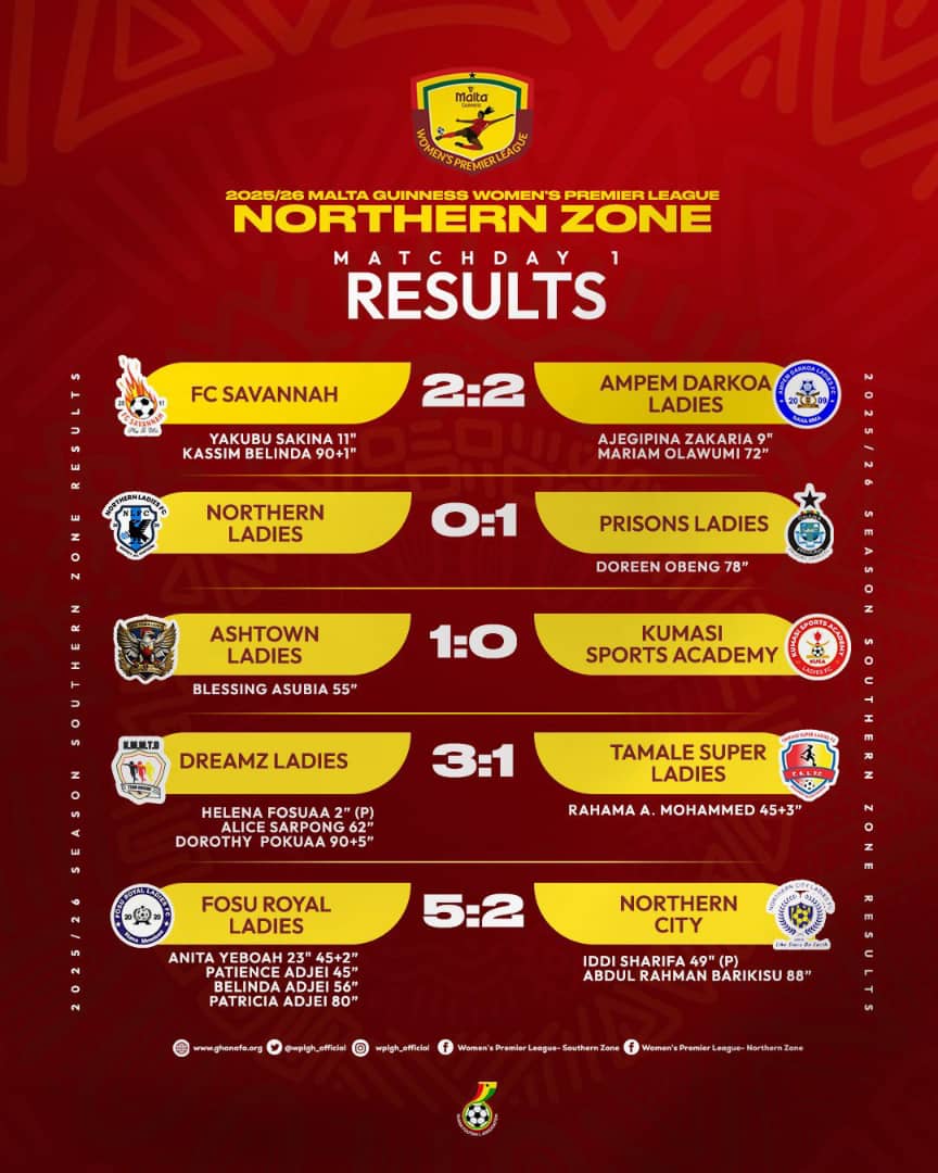 HomeGhanaMalta Guinness Women's Premier League Matchday 1 Results