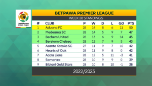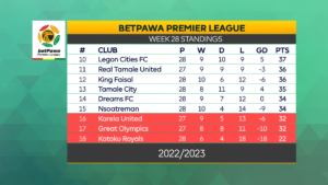 Tamale City are now 13th with 35 points while Hearts of Oak has fallen to 6th position with 42 points.
