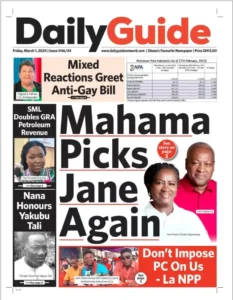 Mahama picks Jane Again. Read this and more in today’s copy of the ‘Daily Guide’ newspaper.