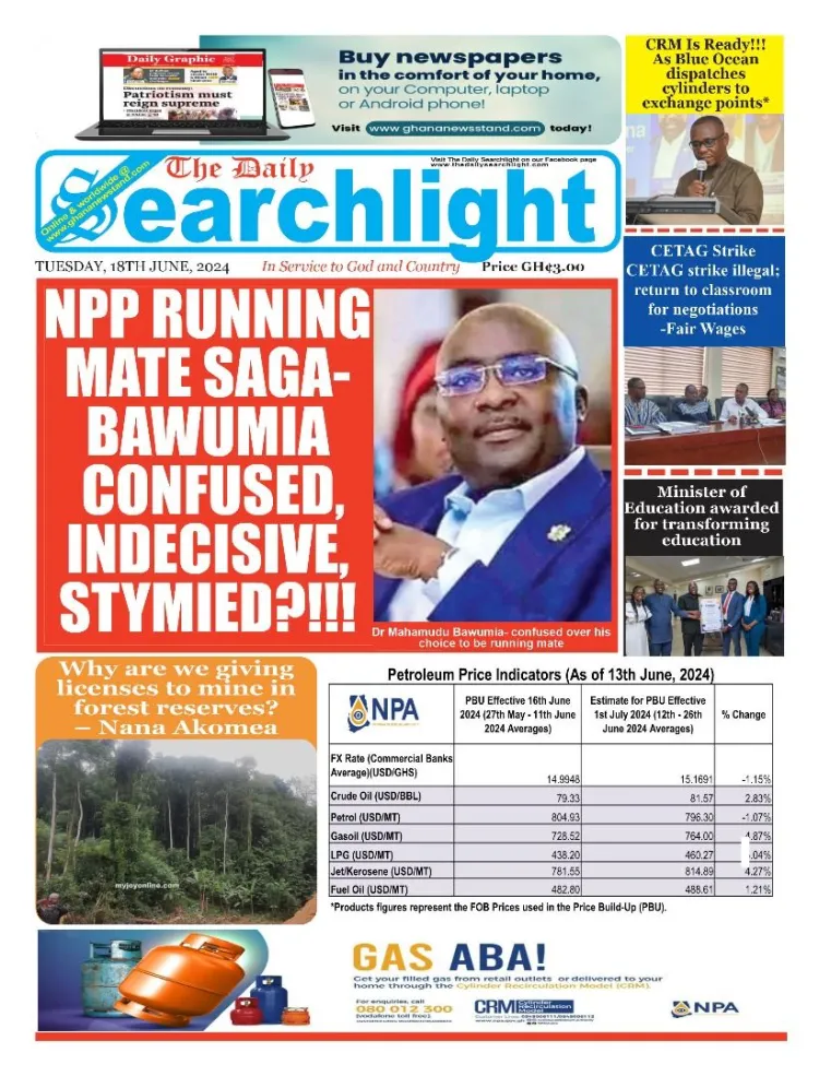 Max.com.gh brings you the front pages of the various newspapers across the country. In some headlines;
