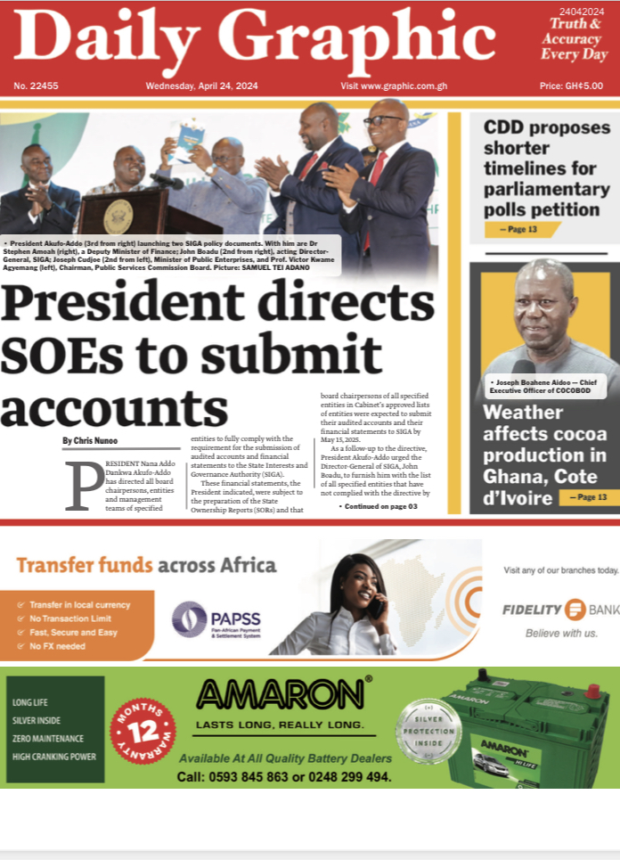 Max.com.gh brings you the front pages of the various newspapers across the country. In some headlines;