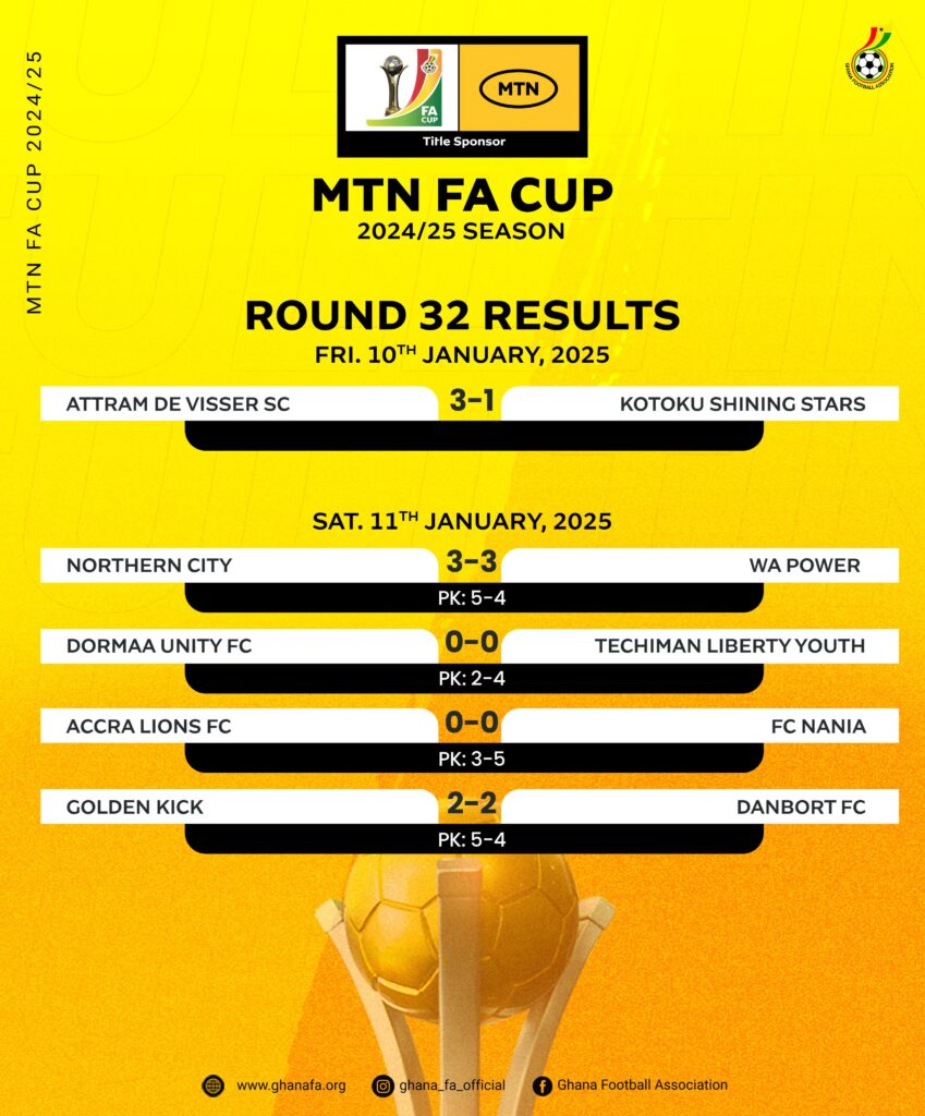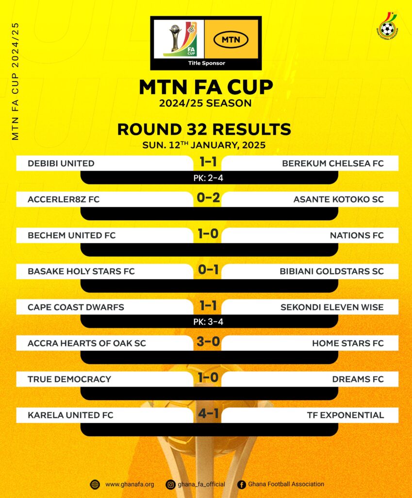 The 2024-25 MTN FA Cup continued with the round of 32, as eight Ghana Premier League (GPL) sides booked their ticket to the next round of the competition.