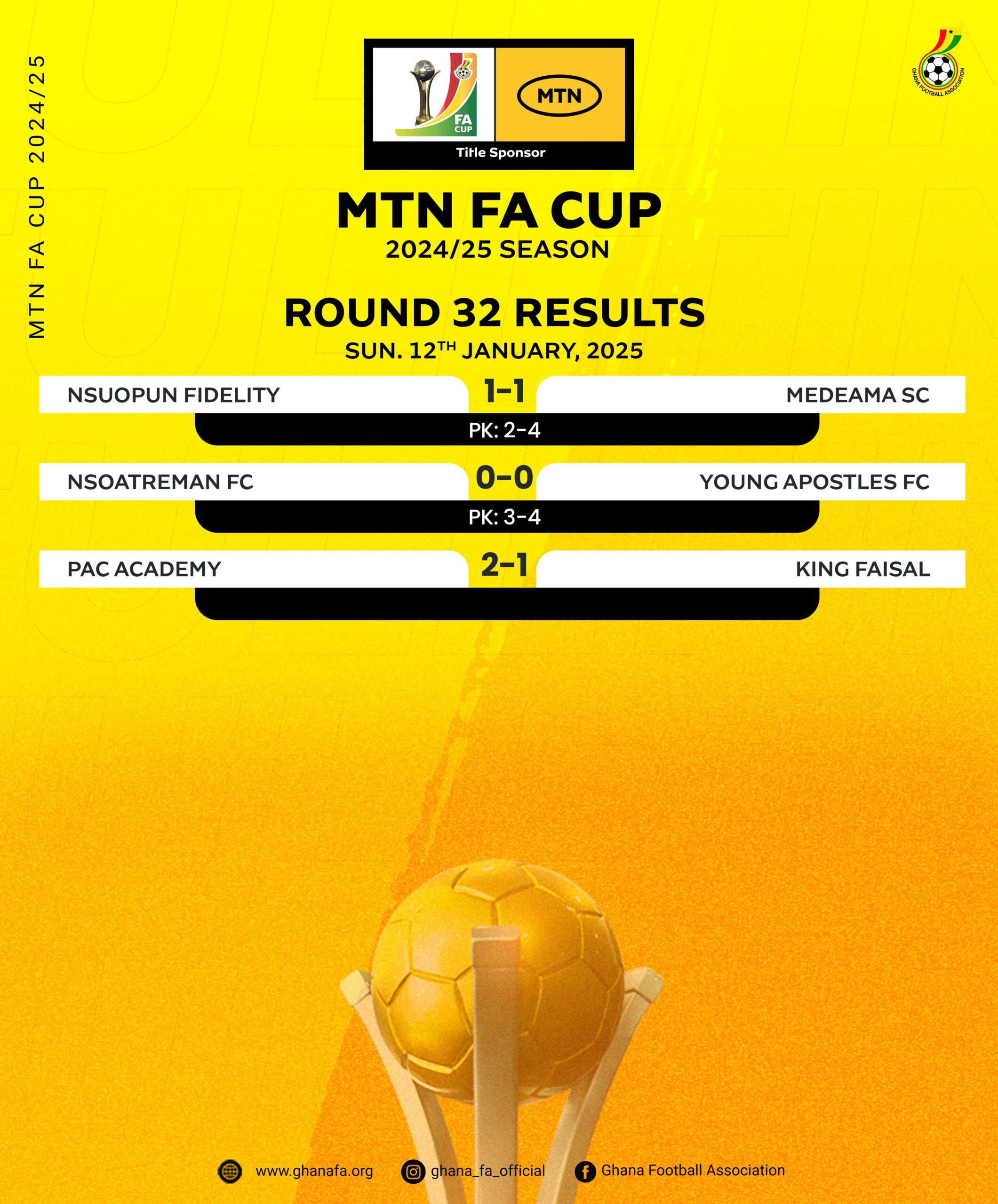The 2024-25 MTN FA Cup continued with the round of 32, as eight Ghana Premier League (GPL) sides booked their ticket to the next round of the competition.