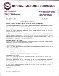 Though there have been calls for the suspension of the implementation of the new Insurance Act 2021, which received presidential assent in February 2021, the NIC noted that the new law was in line with the already existing Insurance Law 1989 (PNDC Law 227) Section 63 and the Insurance Act 2006 (Act 724).