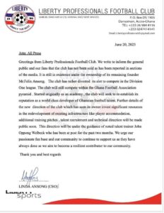 Officially, Liberty Professionals have issued a press release after refuting media reports suggesting a change in ownership of the club following their recent strategy to rebuild.