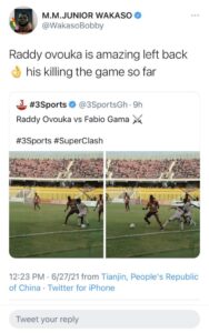 Wakaso, who like many Ghanaians watched the much-anticipated clash with keen interest, couldn’t help but wax lyrical over the 21- year-old fullback.